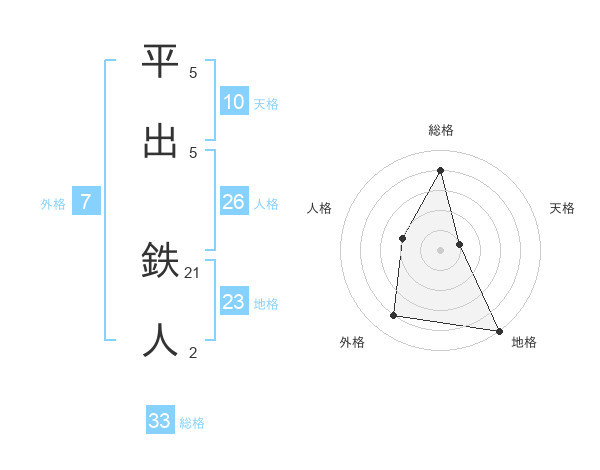 平出 鉄人さんの総格は33画の4点!