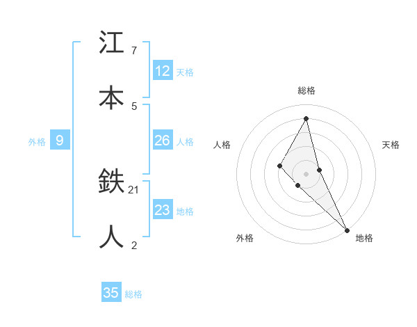 江本 鉄人さんを姓名の画数から五運を鑑定