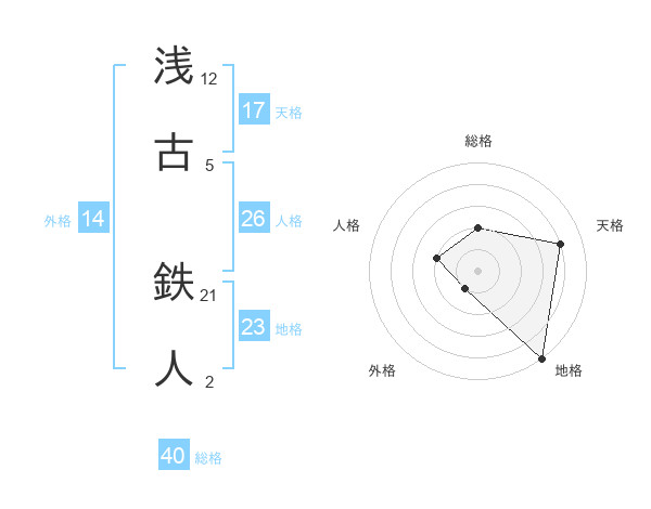 浅古 鉄人さんの天格は17画の4点!