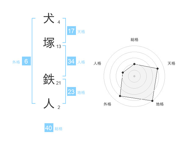 犬塚 鉄人さんの天格は17画の4点!
