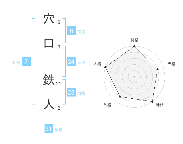 穴口 鉄人さんの総格は31画の5点!