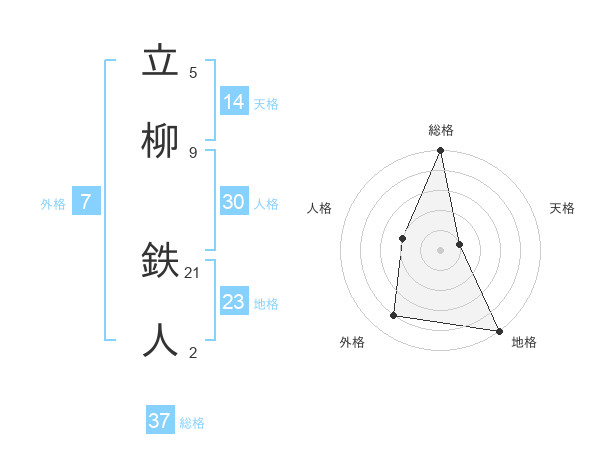 立柳 鉄人さんを姓名の画数から五運を鑑定