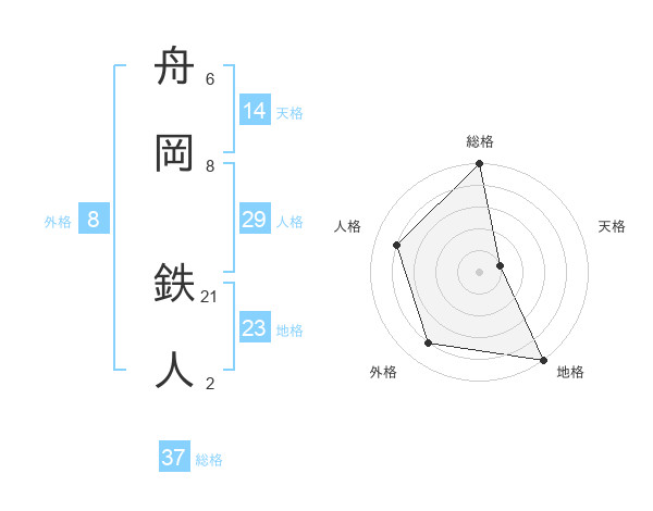 舟岡 鉄人さんを姓名の画数から五運を鑑定