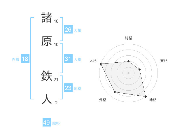 諸原 鉄人さんの天格は26画の2点!