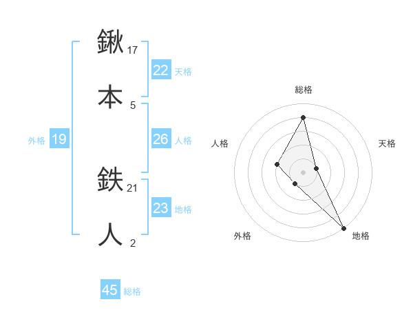 鍬本 鉄人さんを姓名の画数から五運を鑑定