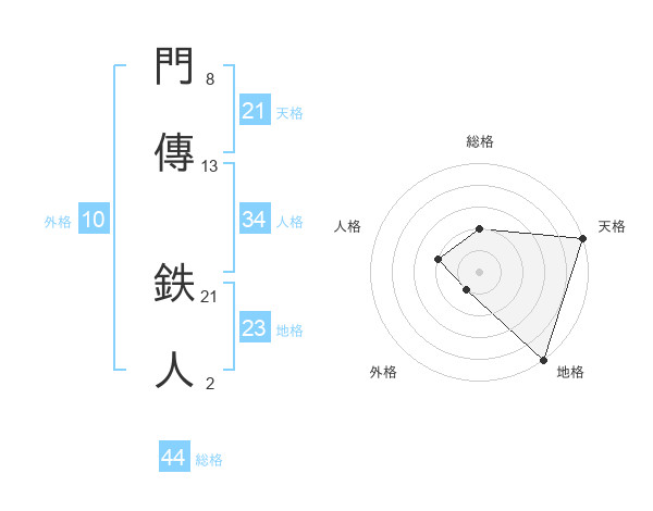 門傳 鉄人さんの総格は44画の2点!