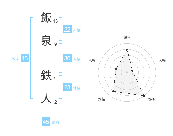 飯泉 鉄人さんの総格は45画の4点!