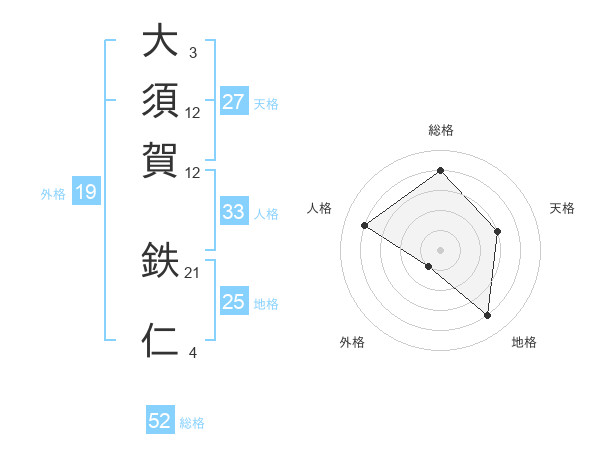大須賀 鉄仁さんの総格は52画の4点!