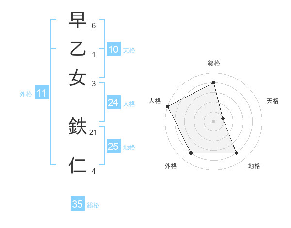 早乙女 鉄仁さんを姓名の画数から五運を鑑定