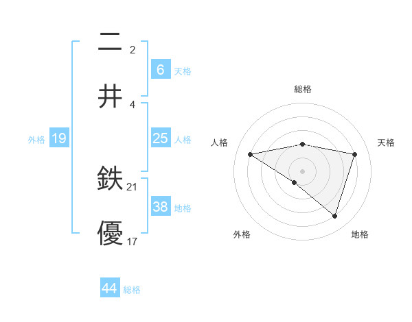 二井 鉄優さんの地格は38画の4点!
