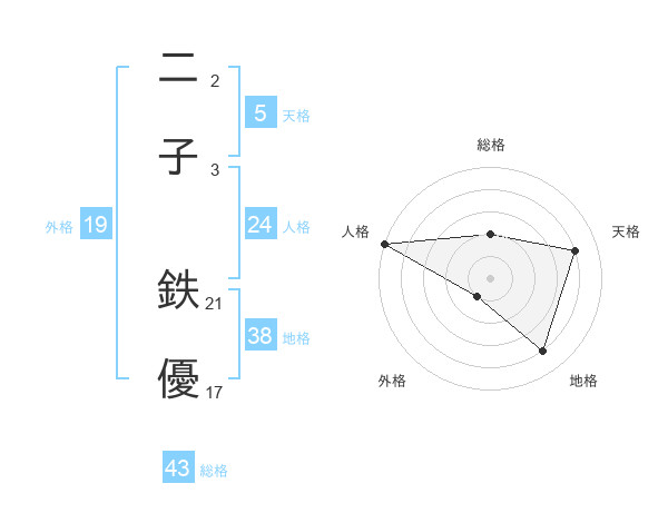 二子 鉄優さんを姓名の画数から五運を鑑定