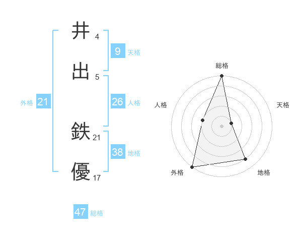 井出 鉄優さんの総格は47画の5点!
