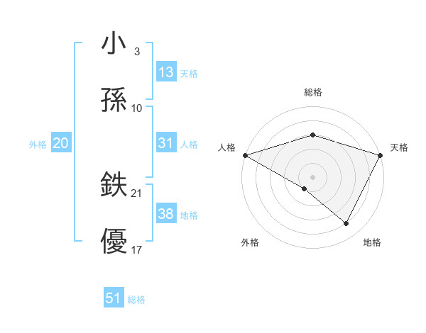 小孫 鉄優さんの総格は51画の3点!
