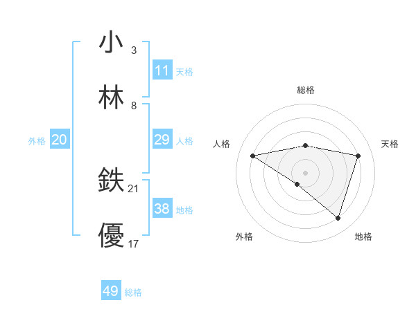 小林 鉄優さんを姓名の画数から五運を鑑定