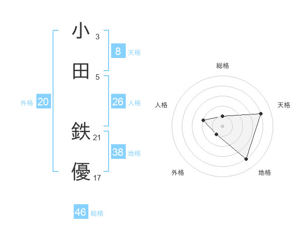 小田 鉄優さんの地格は38画の4点!