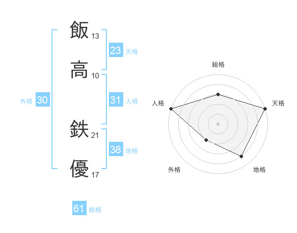 飯高 鉄優さんの総格は61画の3点!