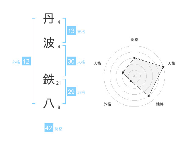 丹波 鉄八さんの総格は42画の3点!