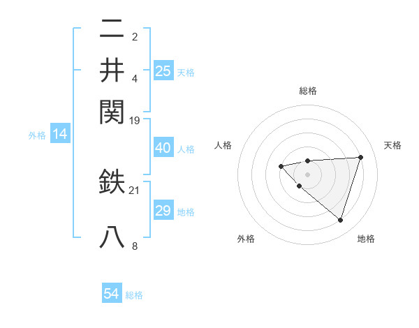 二井関 鉄八さんを姓名の画数から五運を鑑定
