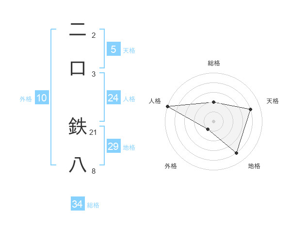 二口 鉄八さんを姓名の画数から五運を鑑定