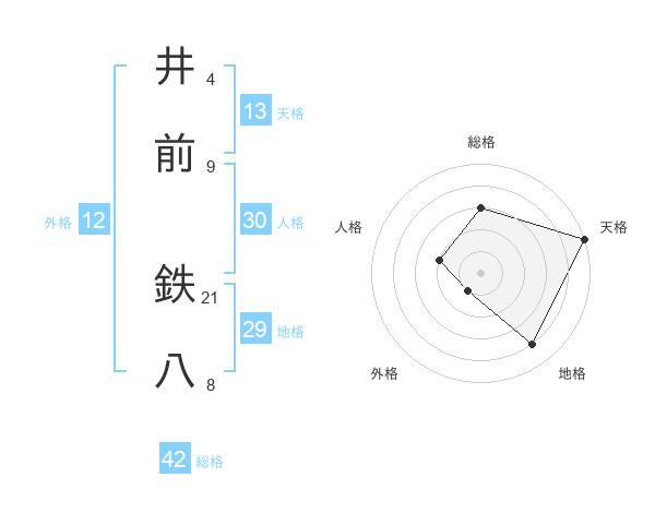 井前 鉄八さんの天格は13画の5点!
