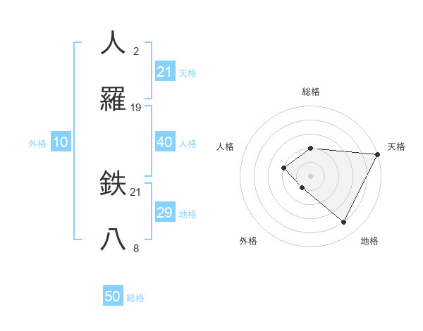 人羅 鉄八さんを姓名の画数から五運を鑑定