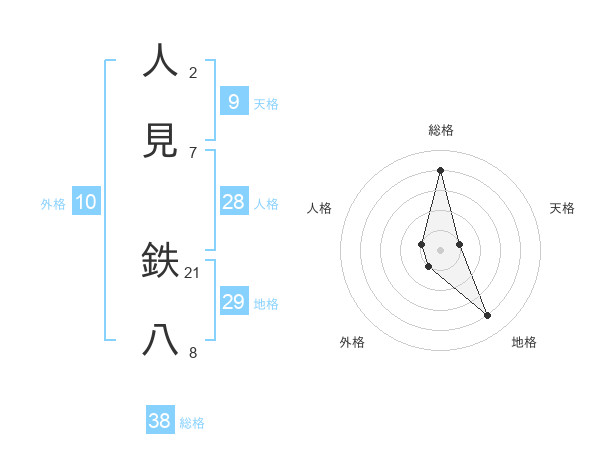 人見 鉄八さんの総格は38画の4点!