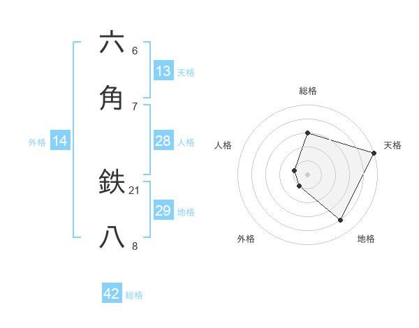 六角 鉄八さんを姓名の画数から五運を鑑定