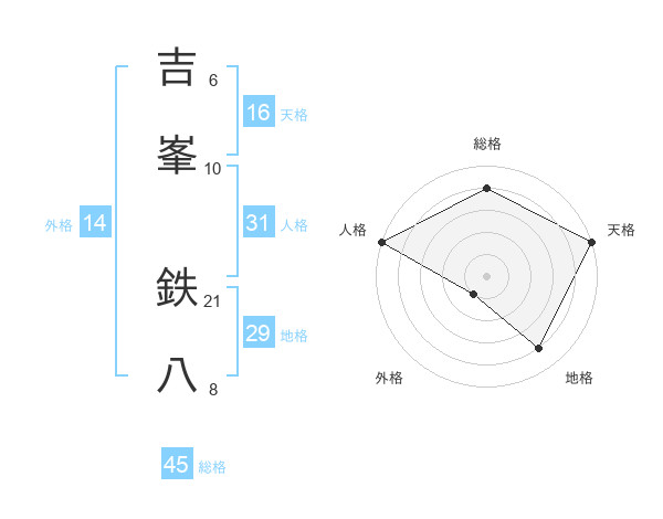 吉峯 鉄八さんの総格は45画の4点!