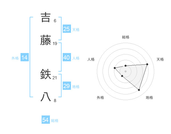 吉藤 鉄八さんの天格は25画の4点!