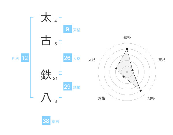 太古 鉄八さんを姓名の画数から五運を鑑定