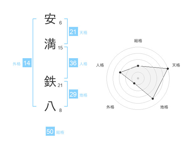 安満 鉄八さんの総格は50画の2点!
