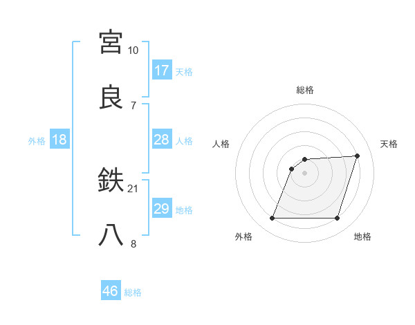宮良 鉄八さんの地格は29画の4点!
