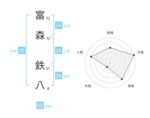 富森 鉄八さんの総格は53画の3点!