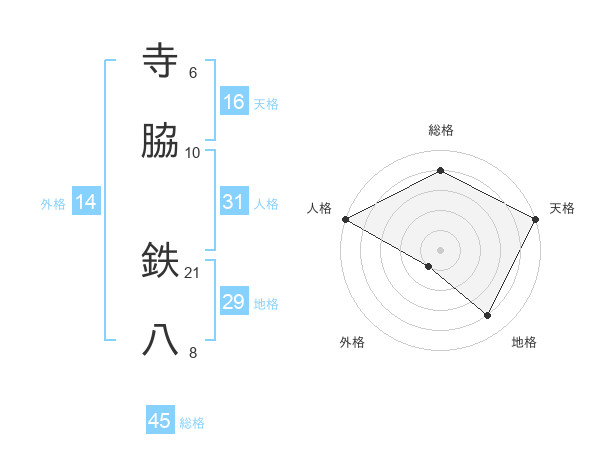 寺脇 鉄八さんを姓名の画数から五運を鑑定