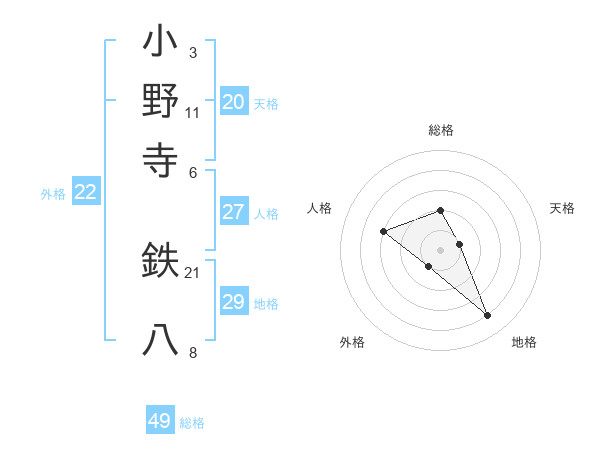 小野寺 鉄八さんの外格は22画の1点!