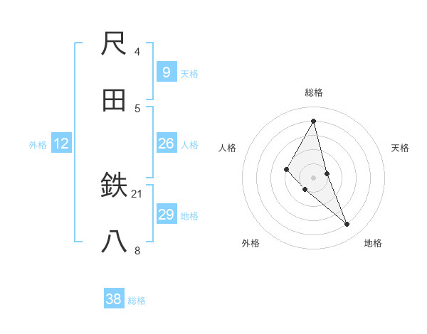 尺田 鉄八さんの総格は38画の4点!