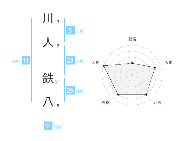 川人 鉄八さんの総格は34画の2点!