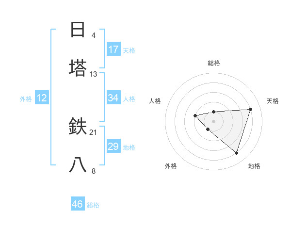 日塔 鉄八さんの天格は17画の4点!