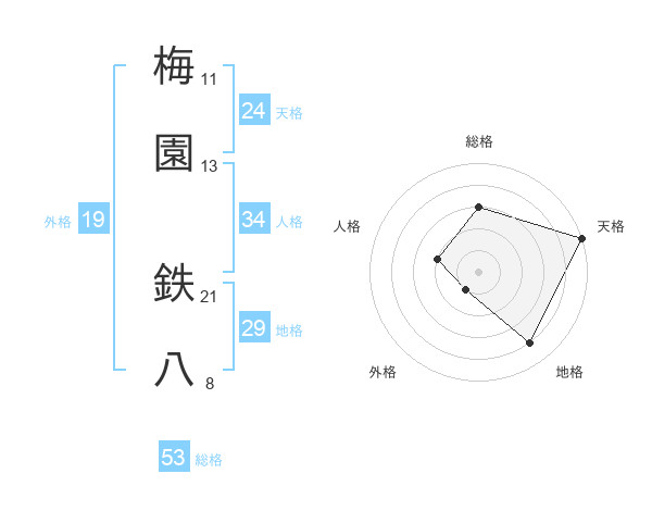 梅園 鉄八さんの総格は53画の3点!