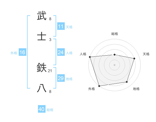 武士 鉄八さんの地格は29画の4点!