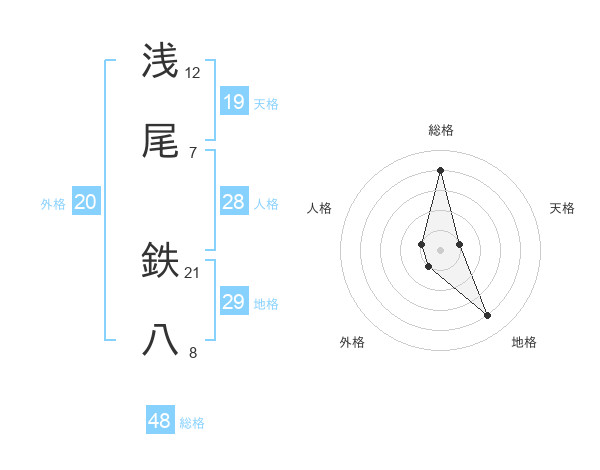 浅尾 鉄八さんの総格は48画の4点!