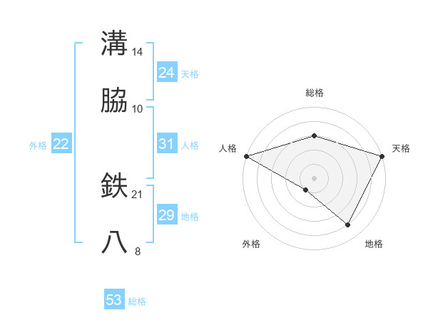 溝脇 鉄八さんを姓名の画数から五運を鑑定