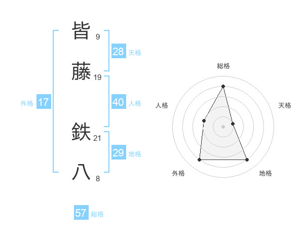皆藤 鉄八さんの総格は57画の4点!