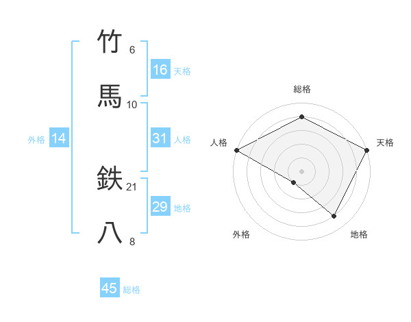 竹馬 鉄八さんの総格は45画の4点!