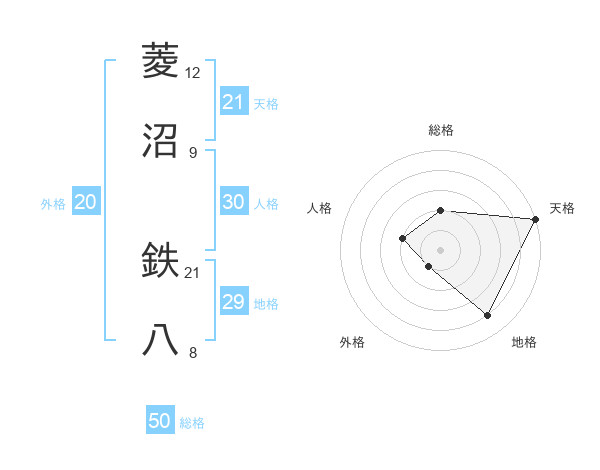 菱沼 鉄八さんの総格は50画の2点!