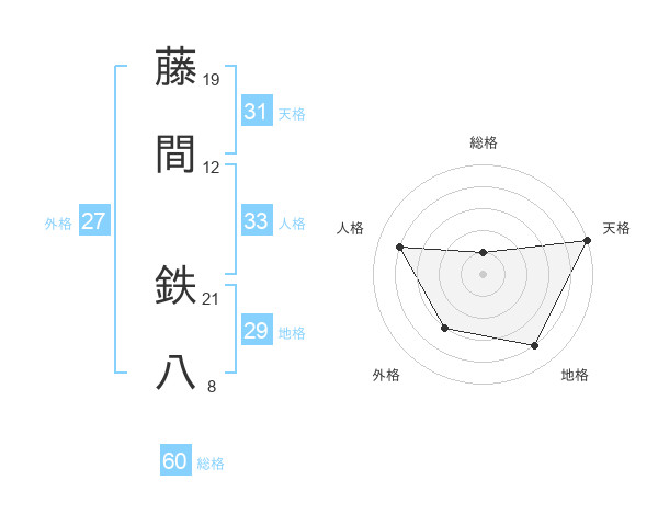 藤間 鉄八さんの天格は31画の5点!