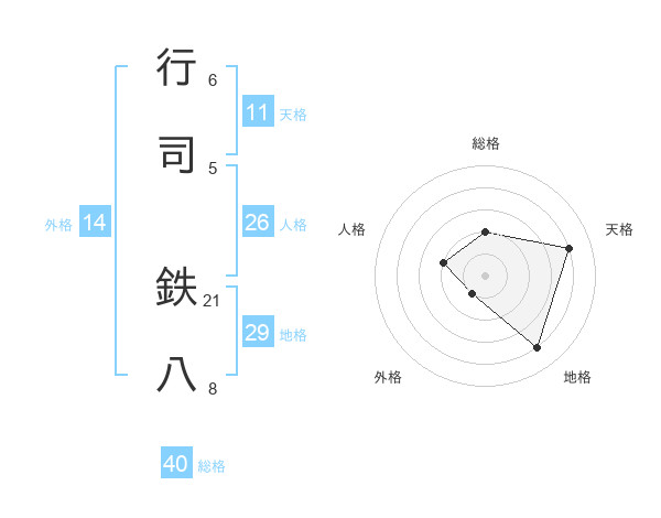 行司 鉄八さんの地格は29画の4点!