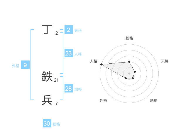 丁 鉄兵さんを姓名の画数から五運を鑑定