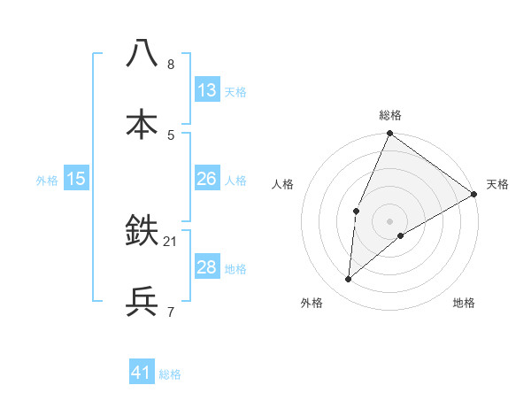 八本 鉄兵さんの外格は15画の4点!