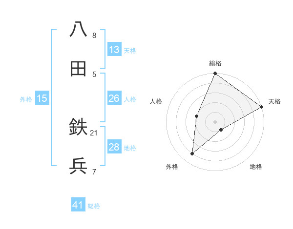 八田 鉄兵さんを姓名の画数から五運を鑑定